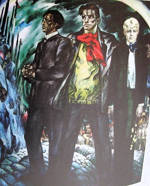 Как обычно, принимали нас в мастерской художника среди картин, некоторые из которых незаконченные, и вот одна из картин – “Поэты”, написанная в 1967 году (фото из альбома), а сама картина в одном из провинциальных музеев. Адольф вспоминал, что в руководстве Союза художников ему сделали замечание о неуместности Блока рядом с Маяковским и Есениным, лучше был бы рядом с ними Багрицкий.