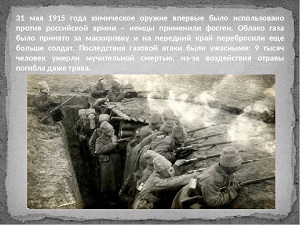 31 мая 1915 года – германцы применили против русской армии фосген.